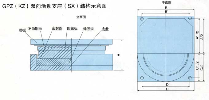 GPZ(KZ)抗震盆式橡膠支座雙向活動(dòng)支座(SX)主要尺寸重量表