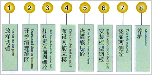 鋼板梳齒型伸縮縫裝置,整體結(jié)構(gòu)高度30~40mm。均不用改變原梁端結(jié)構(gòu),淺埋設(shè)就能達到有效的錨固強度。一般情況下,伸縮量>80mm以后,其它類型的伸縮裝置整體高度高,異型鋼伸縮裝置整體高度>250mm。設(shè)計時,必須對梁端結(jié)構(gòu)進行特殊處理,同時增加施工難度因此,伸縮量大,淺埋設(shè)充分顯示出本伸縮裝置的特有的技術(shù)優(yōu)勢。